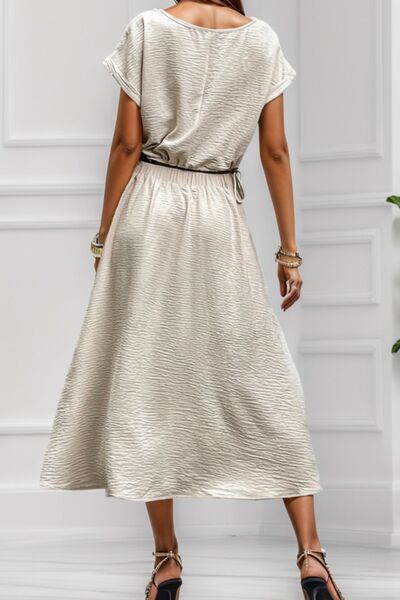 Round Neck Short Sleeve Top and Skirt Set